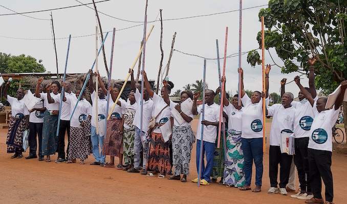 On April 2, 2025, MDP and Togo’s Ministry of Health and Public Hygiene co-hosted a large celebration in the community of Kouvé Gboli, culminating in the administration of the five billionth treatment by *Merck’s Ms. Marilyn Mainardi to community member Mrs. Amavi Amouzou.